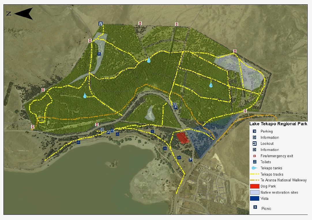 The Lake Tekapo Regional Park is made up of 165 hectares of forested land along the eastern shores of beautiful Lake Tekapo and State Highway 8.