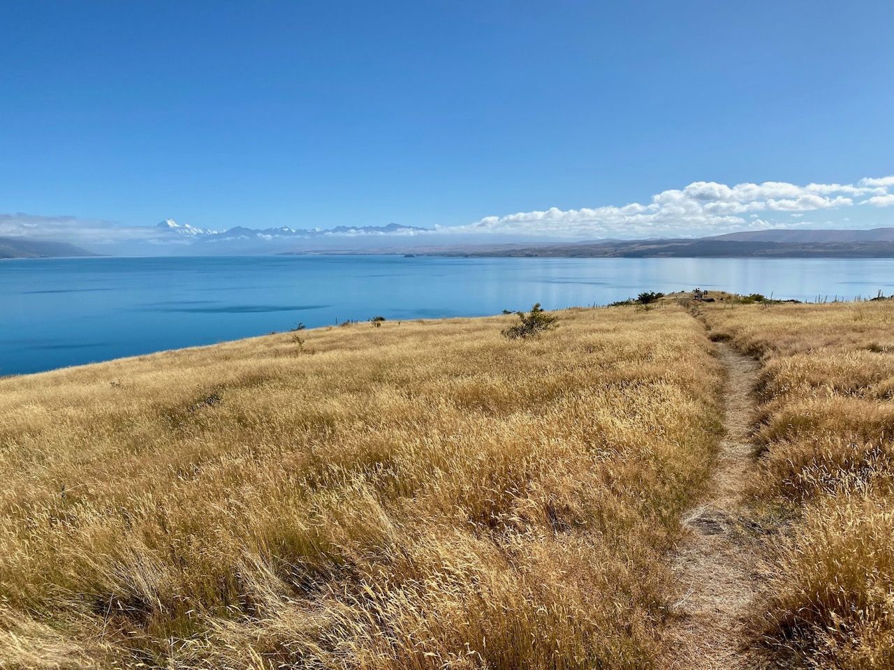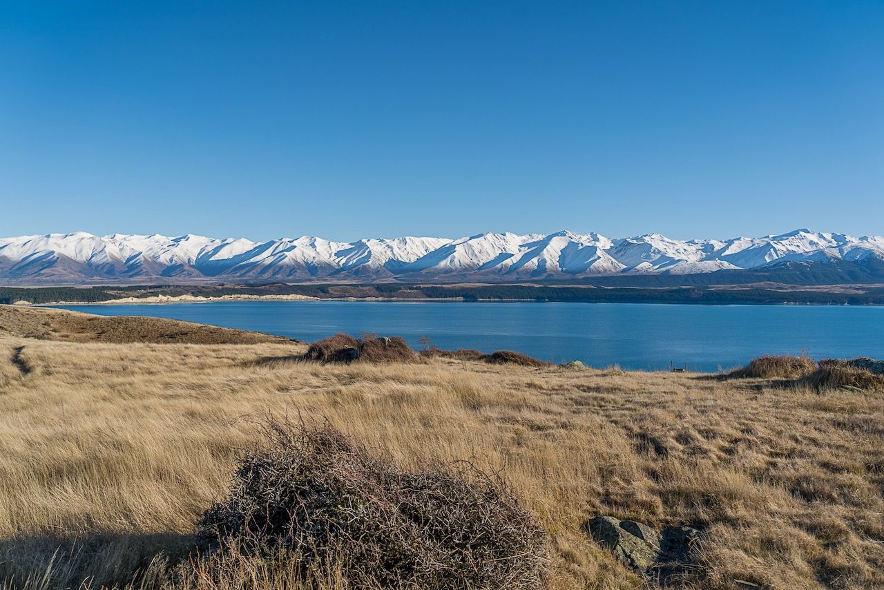As a result, the vegetation is relatively young and there is not much shade on this track. The trade-off is that this allows for stunning 360-degree views of the Southern Alps looking across Lake Pukaki at Aoraki/Mount Cook, Ben Ōhau Range, eastern foothills, and to the south, Mt Benmore.