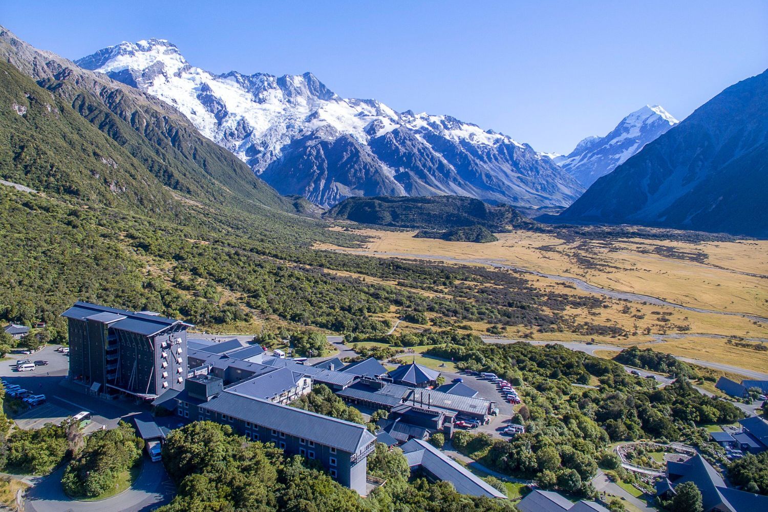 The Hermitage Hotel, located within Aoraki/Mount Cook National Park, is a historic hotel offering a range of accommodation options from standard rooms to premium suites with stunning mountain views. The hotel provides a variety of dining options, including a buffet restaurant and a café. Guests can partake in numerous activities such as boat tours amongst icebergs on a glacial lake, stargazing tours, guided walks, and the Sir Edmund Hillary Alpine Centre, which features a museum, planetarium, and 3D theatre. The Hermitage Hotel combines comfort, history, and adventure in a spectacular alpine setting.